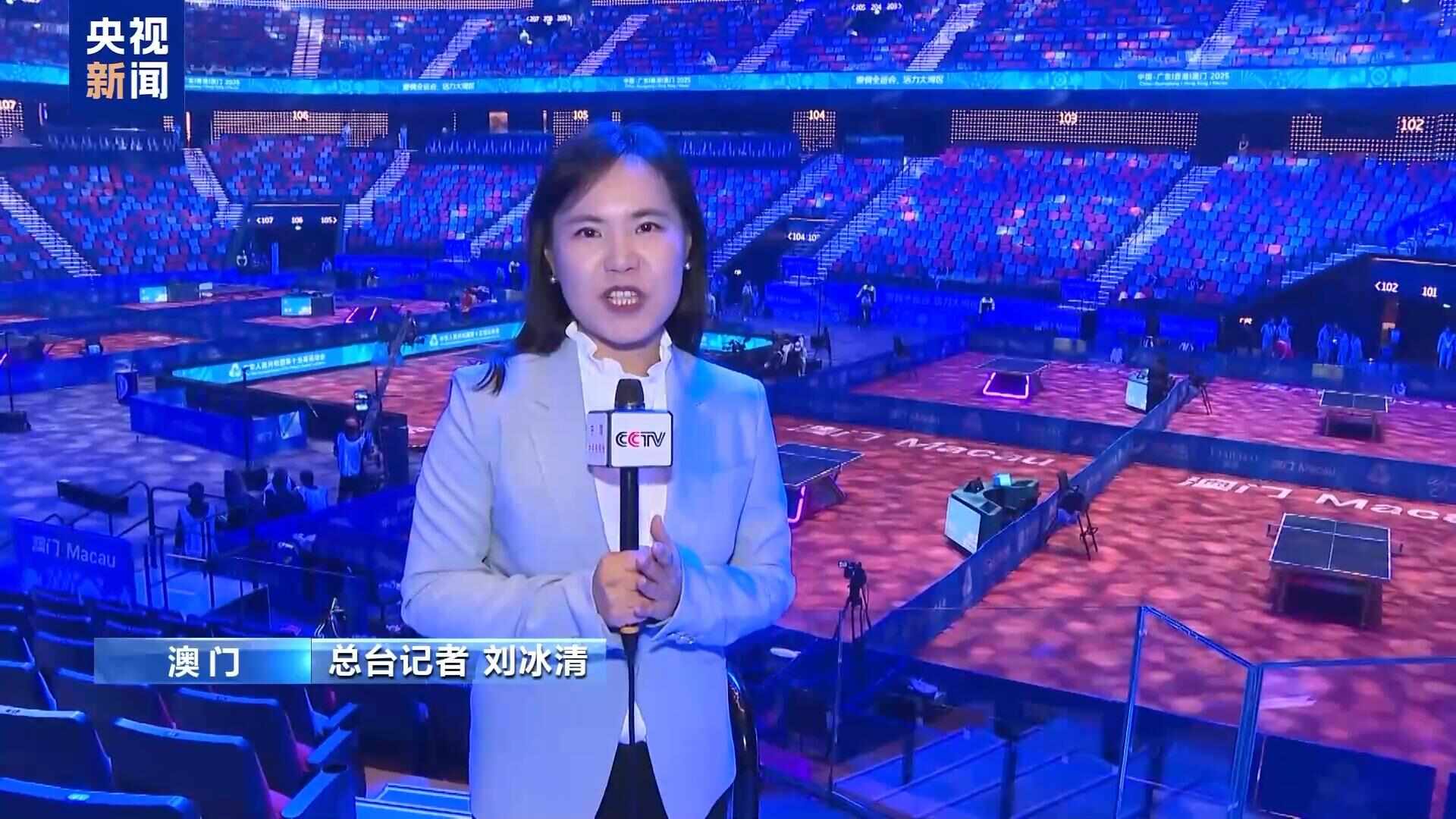 第十五届全运会即将开幕,澳门比赛各项准备工作正在紧锣密鼓地进行。空手道、乒乓球等项目已经开始。赛场内外,国赛气氛十足。总台记者 刘冰清:这是澳门银河综艺馆。是第十五届全运会澳门赛区的主要比赛场馆之一。乒乓球比赛的所有奖牌都将在这里制作。它也是澳门最大的室内体育馆,可容纳约16,000名观众。您可以看到该区域现已完成比赛。本次全国赛,澳门赛区将举办乒乓球、三人篮球、五人篮球(男子18岁以下组)、排球(女子成人组)和空手道等5个比赛项目。这些赛事在东亚运动场、塔石体育场、银河综艺馆等场地举行。目前,部分项目已陆续启动。空手道赛事全运会6日在澳门综艺中心开幕。由郭建恒、方文浩、郑显洛组成的澳门队夺得男子业余团体冠军。这是本届全运会空手道项目的首枚金牌,也是澳门队首次在全运会群众性项目中夺得金牌。澳门空手道运动员郭建恒:我家门口就能比赛空手道比赛即将在澳门举行,我非常兴奋。我很高兴获得这枚奖牌。祝愿所有来澳门比赛的运动员在澳门有美好的经历和回忆。希望他们能够在赛场上打出最好的表现。国家体育场外,澳门街头巷尾也挂满了第十五届全运会的宣传口号和主题花卉。澳门社会各界创作宣传歌曲、举办嘉年华活动,为全运会增添喜庆热闹的气氛。澳门市民马志荣:这些全运会它不仅是一个竞争性的场馆,也是国家推动粤港澳大湾区协同发展、展示“一国两制”成功实践的重要窗口。这来自于我对大湾区活力的亲身体验和对全运会精神的深刻理解。我参与了两部音乐作品的创作。希望通过歌曲,让全运精神、湾区活力、民族情怀直达人心。