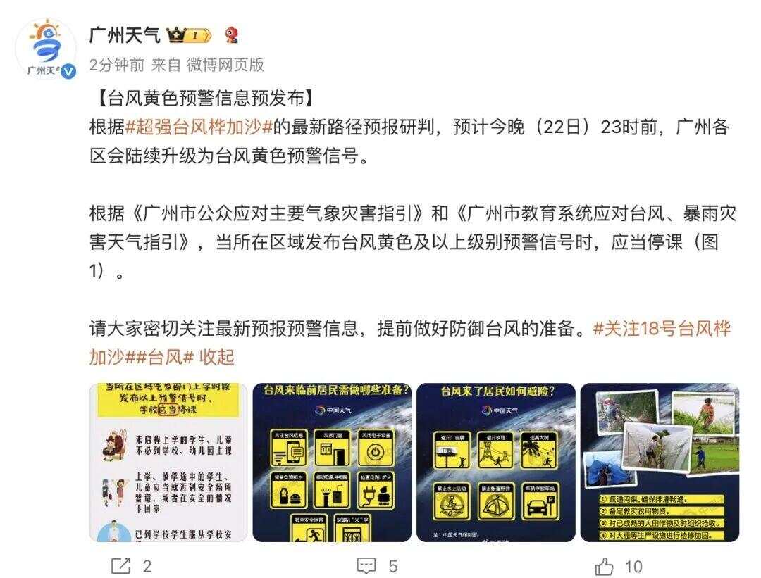根据最新的强大风暴“ Bragaza”的道路和判断道路,广州气象天文台在9月22日晚上表示,预计9月22日23:00之前,广州的各个地区将逐渐升级风暴的风暴黄色警告信号。根据“对重大气象灾难做出反应的广州市政公共指南”和“广州市政教育系统的气候指南,以解决暴风雨和大雨”,该地区应在该地区所在地时暂停。 @gangzhou时期为了回应评论区域的网民,我说从今晚9点开始,所有地区将逐渐升级风暴警告。广州气象部提醒公民注意最新的预测和警告信息,并为防御风暴做准备。同时,广州教育系统具有极端天气的成熟响应技能:当h的红色警告信号Eavy Rains有效,该地区的学校会自动暂停班级;当大雨发生橙色警告信号时,学校延迟上学。当大雨季节发生黄色警告信号时,学校可能会推迟进入学校。公民负责的男子负责公民市政教育局特别提醒人们,11的特定地区受每个地区的通知约束,气象局和“广州天气”发出警告的警告应根据“广州天气”的警告,应基于“广州天气”,并根据媒体和气象局的信息仪式释放的警告,并享有气象局的信息。局“广州天气”。老师,学生和父母可以通过官方渠道实时在动态警告中向Pansin付款。许多学校发布了保护通知,以完善学校学生离开和留在学校的安排。面对飓风的威胁,许多广州学校发布了目标回避通知,以阐明学生离开学校,留在学校和安全保护的要求。广州外语学校发布了“超级台风的纸条”(不。父母可以上学来接孩子,他们应该提前向班主任发送信息;那些将在家中自愿向老师报告的学生应通过短信向老师的领导者报告的学生,在他们的妇女中,他们会遭受痛苦的痛苦;父母会待在家里,请注意一份待在的老师,以便待在家里,以便待在家里,以便待在家里,以便待在家里,以便待在家里,以示为介绍,以便待在家里,以示为个性,以便待在家里,以示为介绍。关于风暴的变化,呼吁父母注意并积极合作。该地区的小流氓和幼儿园自动暂停课程,家庭学生不必重返学校,父母必须照顾他们。上学的学生应该在附近找到一个安全的地方以避免风险,并选择上学或回家确保卡利格塔桑的奖项;上学的学生将组织老师来管理,以确保父母。同时,学校特别强调,父母和子女应在暴风雨期间试图留在室内,并且除非有必要确保自己的安全,否则不会出现。目前,广州气象部继续监视风暴“桦木加沙”的道路和强度的变化,教育与学校部也进入了紧急准备状态。要求老师,学生和父母注意官方信息和警告通知,采取措施提前保护风暴,并与生存合作。来源| YangcheNG晚上新闻,扬昌学校,Jinyang.com文字| Liang Yitao,他宁