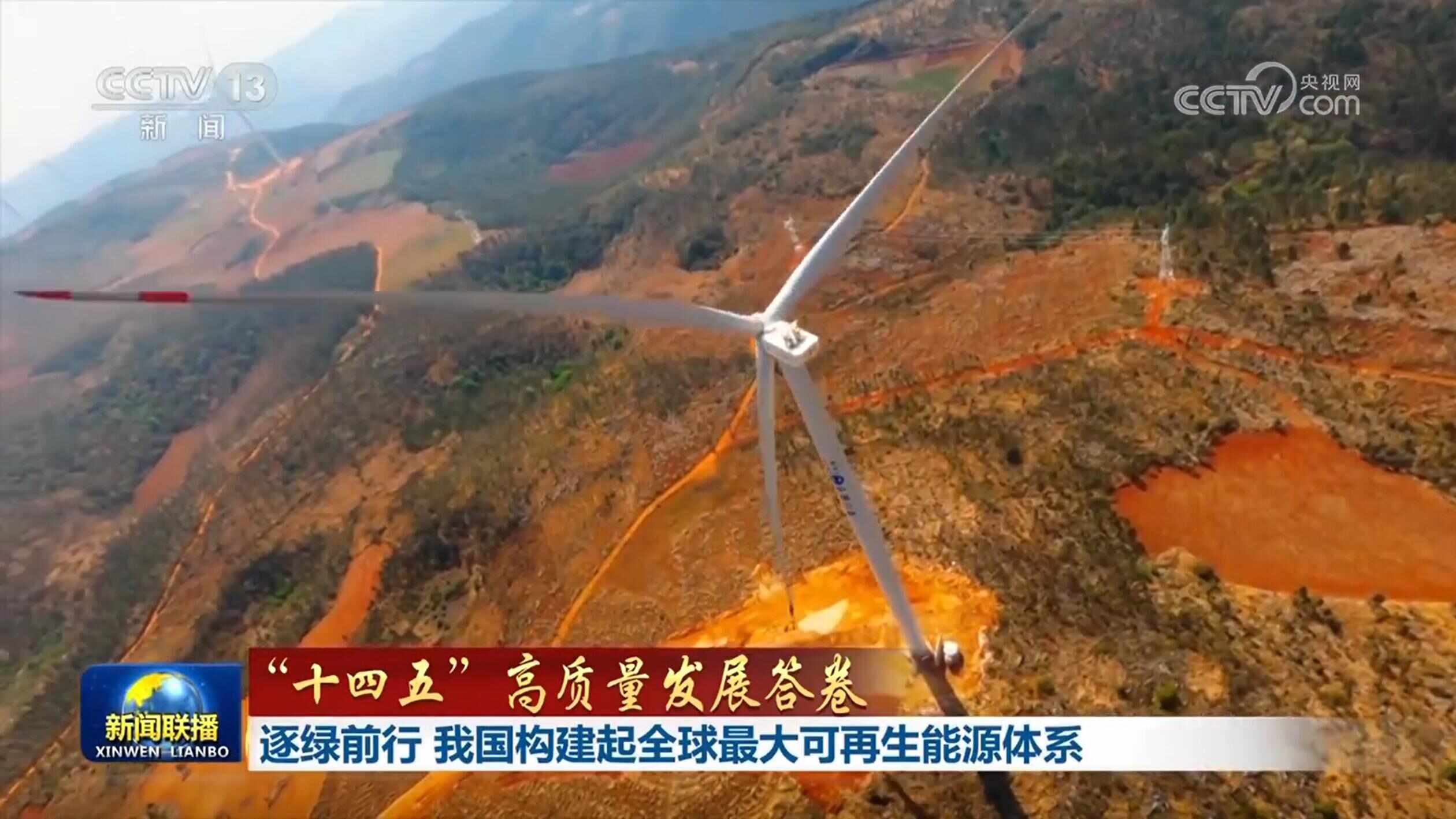 央视新闻(新闻联播):无人居住的沙漠、沙漠、荒滩变身巨大发电厂,绵延千里,清洁能源毫秒级从东到西“闪现”。 “十四五”以来,中国追求“绿色”,在千山万水间铺展开绿色能源转型的壮丽画卷,中国能源生产和消费格局被改写。这是太阳从沙海上升起的时刻。 27,000 个定日镜同时被唤醒。这里每年发电量相当于替代煤炭56万吨。当风吹过高原时,93米长的叶片加速旋转,每旋转一次产生的电力足够一家三口使用两天。现在,中国每年发电量超过10万亿千瓦时,占世界的1/3。全社会用电量中ety,每3千瓦时1千瓦时来自风、阳光、水和水。这是世界上最大、最遥远的绿色奇迹。长江干流上,六座大型水电站隔江而立,形成了世界上最大的清洁能源走廊。在“沙格皇”新能源基地,昔日寸草不生的土地,如今变成了蓝色的光伏海洋。 “十四五”规划布局的9个清洁能源基地中有7个在西部地区。如果把过去五年全国新增的光伏板摊开来看,总面积可覆盖53万个足球场;如果将新增的空气涡轮叶片按顺序连接起来,其长度相当于从中国最宽的地方到最远的地方步行一个来回。 “十四五”特高压“能源大动脉”也打破地域壁垒,加速发展。五年来,已建成特高压线路19条建成,形成超级输电网络。如今,西电东送跨区域输送增长70%,西电绿色电力支撑了东中部地区五分之一的电力需求。新能源存储最早出现在五年规划中。依靠重力和压缩空气的储存,“巨型充电宝”大规模参与今年夏天的“迎峰度夏”行动,成为电网应对“高峰时刻”的“准针”。如今,我国已建成规模最大、最完善的新能源产业链,“十四五”非化石能源消费占20%的目标已如期完成。