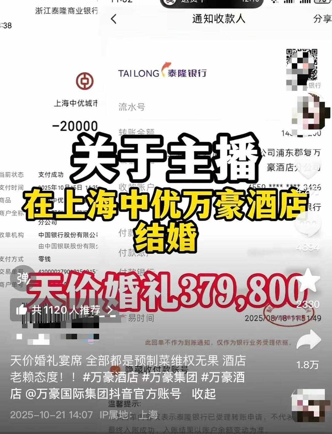 10月21日,有网友发布视频,自称花费近38万元在上海中油城市万豪酒店举办婚礼。一些客人抱怨食物不合标准。后来,该网友与酒店交谈时才发现,每桌8888元的婚宴,居然用的是预先做好的菜品。相关内容迅速引发网友热议。据网友视频内容显示,在与酒店交谈时,酒店工作人员承诺“百分百不是前菜”。对于是否有“打开塑料包装直接放在桌子上加热”这样的菜品,酒店回复称没有这样的菜品。然而,当网友进入酒店厨房核实情况时,却发现大量包装完好的菜肴——菜单上承诺的鲜虾猪肉是包装好的预制菜,承诺的鲜虾也是冷冻熟虾,八保零食是安水牌产品。,而且菜单上的海鲜贝壳只有壳没有肉……这个五星级酒店的卫生条件。从网友发布的视频中可以看到,婚宴套餐售价为8888元(含服务费、税费)(每桌10人,以10人计算)。 10月22日,该网友再次发布视频更新事件进展,称已收到上海中油城市万豪酒店律师函。酒店建议发布者限期删除网友及其好友在大众点评上发表的虚假恶意评论。律师函称:请您收到本函后立即删除网络平台上发布的所有针对万豪酒店的贬损言论,并向网络平台上的万豪酒店公开道歉。 10月23日,针对网友视频中看到的问题,记者致电上海中油城市万豪酒店宴会厅。接线员表示,记者的联系方式和相关询问均已记录,公关部门稍后会回复。截至发稿,记者尚未收到酒店方面的正式回应。记者查看大众点评平台发现,酒店宴会厅在平台上推出了四款精选婚宴套餐,价格从7388元/桌至13888元/桌不等,其中套餐8888元/桌不等。