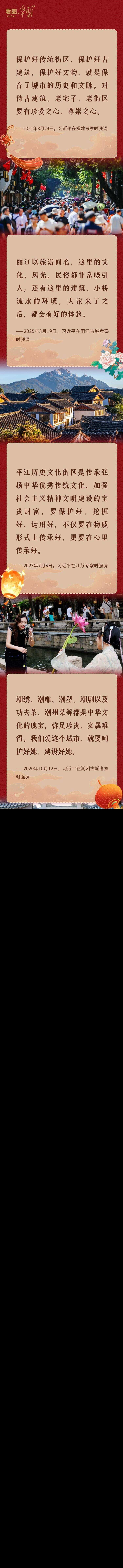 “我们要欣赏和尊重古建筑、老房子、老街区。”党的十八大以来,习近平总书记在地方考察时多次深入当地古城老街,评价历史文脉保护传承情况并作出重要指示。 2025年国庆、中秋假期期间,全国热门历史文化文化、历史街区将带来客流高峰。丰富多彩的文化遗产活动和新的消费体验将吸引众多游客参与。现在,让我们跟随总书记的脚步,感受古城老街如何在保护和变迁中变得有趣、绽放辉煌!监理:罗红兵 总策划:张军于峰 监理:吴刚 王伟 策划:赵静 王静 设计:魏星宇 埃迪联系人:王志涛