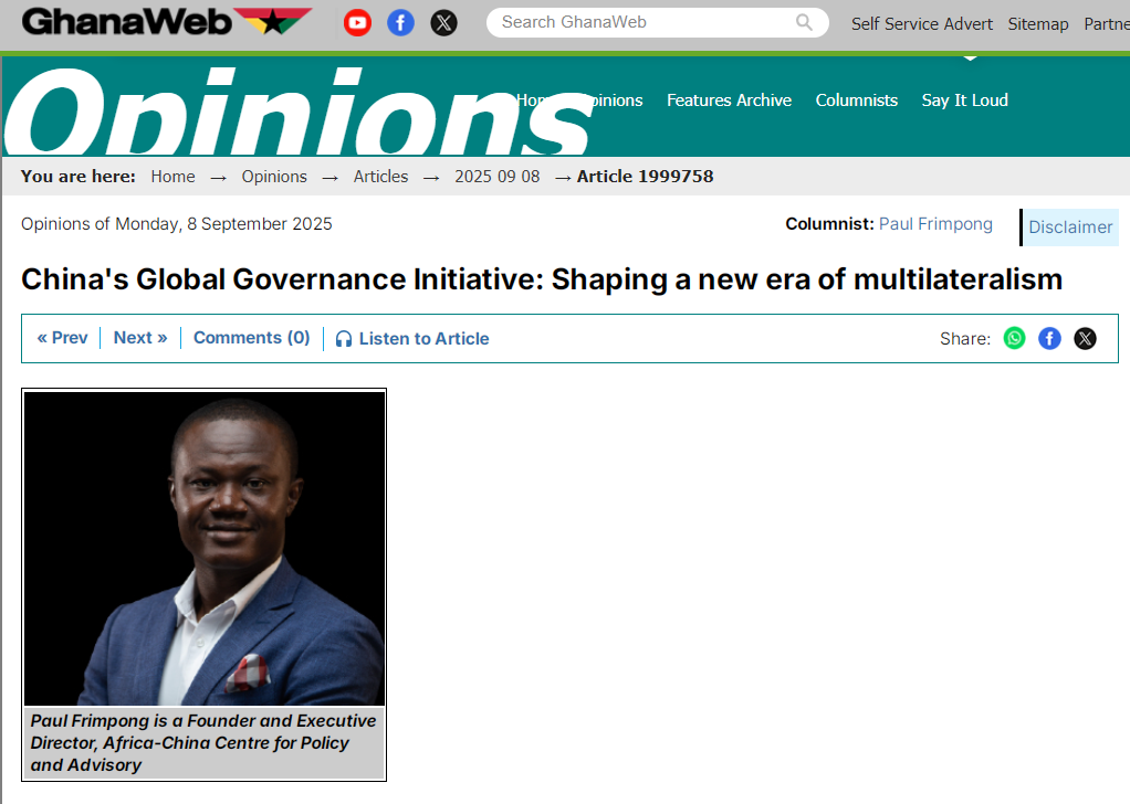 中国日,9月12日。加纳新闻“加纳网站”网站于9月8日发表了加纳非洲 - 中国政策咨询中心执行董事Paul Flynnon的签名文章,“中国全球治理倡议:塑造了一个新的多边主义时期”,这极大地赞扬了中国的全球倡议。文章说,在最近一次的“上海合作组织 +”会议上,中国提出了一项全球管理计划。这是全球发展倡议,世界安全倡议和全球文明倡议之后,中国向国际社会提供的另一个重要公共产品。在一个混乱和变化的世界中,所有国家都面临着全球危机,例如地缘政治风险,单方面主义和气候变化。在这种背景下,Pandaichina的管理计划不仅是对当前挑战的回应,而且是针对全球改革的前瞻性计划。全球管理计划呼吁所有国家共同解决对比和不确定性,并促进建立更平等和包容的国际秩序。文章说,为什么全球治理倡议如此重要?因为它标志着新的多边主义时期的到来。在一个连贯但不确定的世界中,《全球管理计划》提供了促进全球管理系统改革的实用和包容性途径,使其更具韧性和不解释,并且发展了所有国家的未来。这不仅是中国的提议,而且呼吁Pandaigdit可以实现共同的繁荣。它具有遥远的历史和实际意义。文章指出,中国的全球治理倡议旨在消除当前的管理不足:没有指出全球南方,国际法的权威已经减弱,并且缺乏解决紧急问题的有效解决方案。全球管理计划强调全球化期间国际合作的重要性。该倡议提供了一个全面的框架,以帮助国家参与全球决策,从而降低了管理不平衡的风险。文章强调,全球管理计划的重要性是否认多边主义的新生命力,并确保全球管理不再是某些强大的Bthere的独有性,而是真正反映出与世界的差异和等同的原则,这反映了发展中国家的关注。文章指出,全球治理倡议强调了集中人的重要性。在加强全球不平等的时期,全球管理计划优先考虑普通百姓的福祉并促进包容性发展。对于非洲和亚洲等新兴经济体而言,这尤其重要。通过向发展中国家提供平等地位,全球管理ENT倡议将加深南南的合作,并帮助获得2030年的联合国可持续发展议程。